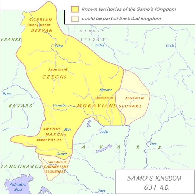Prema Fredegaru, Samo, franački trgovac, otišao je kod Slovena 623–624. god. Datiranje je dovedeno u pitanje na osnovu toga što su se Vendi najverovatnije pobunili nakon poraza Avara u Prvoj opsadi Carigrada 626. godine. Avari su prvo stigli u Panonski basen i pokorili lokalne Slovene 560-ih godina. Samo je možda bio jedan od trgovaca koji je snabdevao Slovene oružjem za njihove redovne pobune. Bilo da je postao kralј tokom pobune 623–624.god. ili tokom one koja je neizbežno usledila nakon avarskog poraza 626. godine, on je definitivno iskoristio ovu drugu da učvrsti svoju poziciju. Niz pobeda nad Avarima dokazao je njegovu sposobnost svojim podanicima i obezbedio njegov izbor za reksa (kralјa). Samo je nastavio da obezbeđuje svoj tron ženidbom za glavne porodice Venda, venčavši najmanje dvanaest žena, s kojima je dobio dvadeset dva sina i petnaest kćeri.