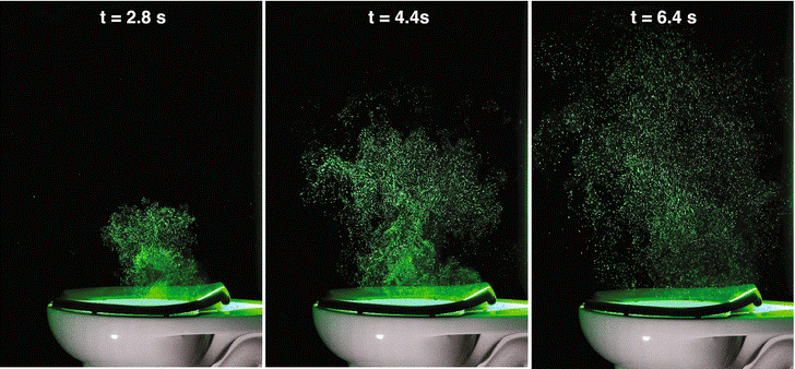 Standardni toalet je dizajniran da pušta vodu dok ispira cev. Međutim, u tom procesu voda se sudara sa sadržajem posude i formira neku vrstu „prašine“ – aerosolni tok čestica suspendovanih u vazduhu.