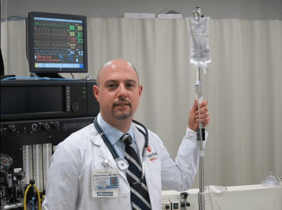 Uprkos tome što je bio usred epizode atrijalne fibrilacije, čovek je bio oprezan i zbijao šale. Nervozno se kikotao dok je Ansion, radeći sa dva lekara hitne pomoći, stavljala kapu na glavu za elektroencefalogram (ili EEG, za merenje električnih signala u mozgu) i prilepila dva čitača kiseonika na njegovo čelo. Marsijal, koja je stajala pozadi, kroz naočare od kornjačevine zavirila je u laptop, gde su dve šiljate linije u crvenoj i plavoj boji počele da se pomeraju po ekranu – precizna merenja, za istrenirano oko, pacijentove moždane aktivnosti.