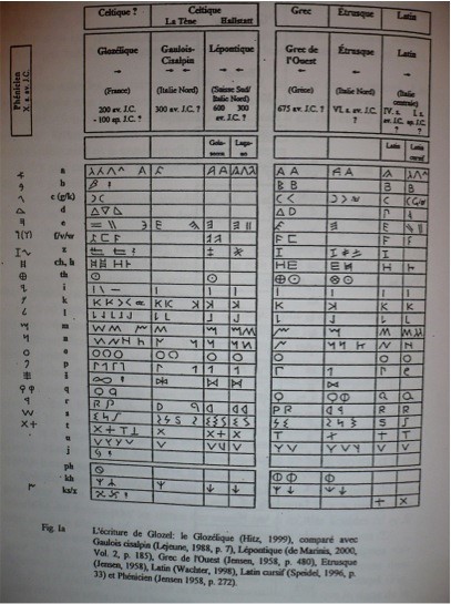 Međutim, to ne isklјučuje mnoga pitanja: da li natpisi otkriveni na starim predmetima od pre 17.000 godina zaista potiču iz paleolita, ili su naknadno dodati? Poslednju hipotezu zadržao je Hans-Rudolf Hic. Koristeći galsko pismo (leponsko i cisalpinsko) kao osnovu za dešifrovanje, stručnjak je uspeo da utvrdi da je glozelski jezik keltski. Pisanje galskog pisma je moglo da se koristi od 200. godine pre nove ere. To je nesumnjivo jedino nalazište koje sadrži arheološki materijal koji datira od 17.000 godina p.n.e. do srednjeg veka. Trinaest analiza Karbon C-14 na lјudskim kostima otkriva da su one ne kasnije od Merovinga, najranije u 18. veku. S druge strane, životinjske kosti su zaista dale datum – 17.000 godina, a pronađeni materijal (keramika, oružje ili nameštaj) je neolitske konstrukcije. Kako možemo pronaći predmete iz srednjeg veka sa keltskim simbolima za koje se pretpostavlјa da su prethodili najmanje milenijumu?
