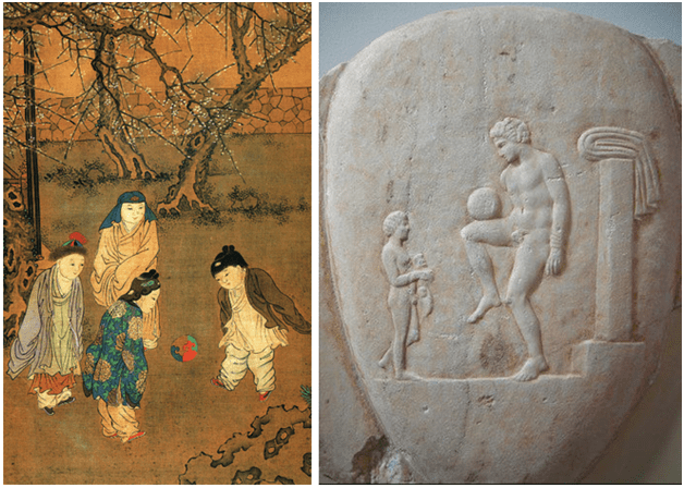 Igre koje su se temeljile na šutiranju lopte odigravale su se u mnogim zemljama tokom istorije. Najstarija igra o kojoj postoje dokumenti je cuju (lopta za udarac), koja se pominje tokom vojnih vežbi za vreme dinastije Čin u Kini (255—206. p. n. e.). Ostale pradavne igre bile su kemari u Japanu i harpastum u Starom Rimu.