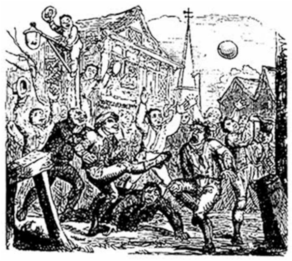U 9. veku, grupu mladića koji se igraju loptom posmatrao je i snimio velški monah po imenu Nenius. 300 godina kasnije, 1147. godine, u Normandiji je poveljom zabeležena uplata za „7 balona najveće dimenzije“, koja će se koristiti za igre „La Soule“, za koji nemamo prevod.