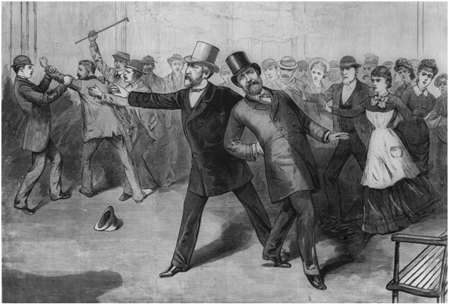 Ubistvo Džejmsa A. Garfilda , 20.-og predsednika Sjedinjenih Država , počelo je na železničkoj stanici Baltimor i Potomak u Vašingtonu, u 9:20 ujutru u subotu, 2. jula 1881.god., manje od četiri meseca nakon što je preuzeo dužnost. Dok je predsednik dolazio na železničku stanicu, pisac i advokat Čarls Dž. Gito ga je dva puta upucao iz revolvera .441 Veblej Britiš Bul Dog: jedan metak je okrznuo predsednikovo rame, a drugi mu je probio leđa. Sledećih jedanaest nedelja, Garfild je izdržao bol i patnju zbog toga što je upucan, pre nego što je umro 19. septembra 1881.god., u 22:35 posle podne, od komplikacija izazvanih jatrogenim infekcijama, koje je zadobio nemilosrdnim ispitivanjem lekara njegovih rana nesterilizovanim prstima i instrumentima. Preživeo je ukupno 79 dana nakon što je upucan.