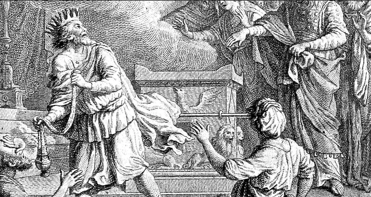 Dakle, u svom pokušaju da oda počast samom Bogu, kralj Ozija je pokušao da negira božanski zaređenu ulogu sveštenika koji prinose tamjan na oltaru. Prkoseći žalbama sveštenika na njegovu akciju, kralj Ozija je zapretio da će ih ubiti i za Božju kaznu desio se veliki zemljotres i jarki zraci sunca probili se kroz pukotinu koja se pojavila na krovu hrama. Očigledno, sunčevi zraci su kralju odmah dali gubu i on je morao da proživi ostatak života u izolaciji.