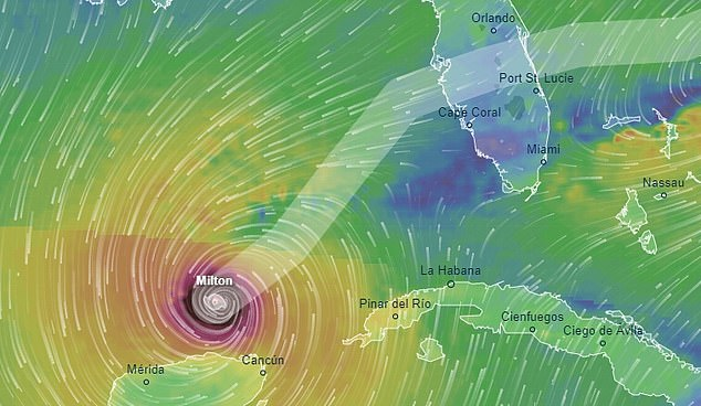 Milton se u ponedeljak brzo pojačao iznad Meksičkog zaliva, ojačavši od uragana kategorije 1 do skoro rekordnog uragana kategorije 5 sa vetrovima od 400 km/g.