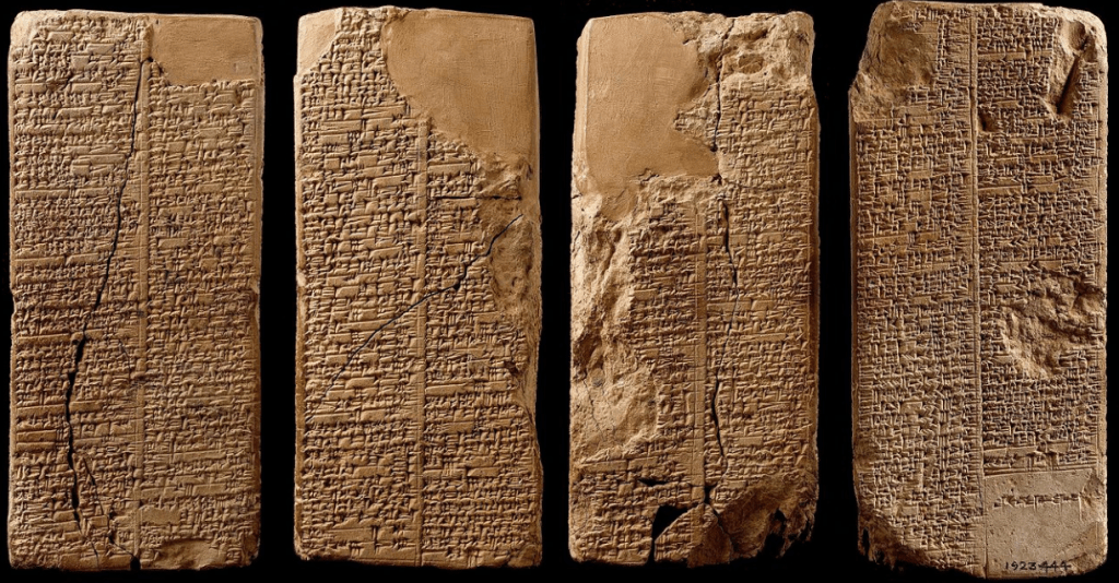 Postoje tri glavne priče o potopu iz Mesopotamije. Prvi se zove Atrahasis (ponekad pod nazivom „Atrahasis i potop“ kada se prevede), Eridu Geneza i dobro poznati Ep o Gilgamešu. Potop je značajan jer su drevni Mesopotamci videli Kiš kao „prvi grad u koji je ’kraljevstvo sišlo sa neba‘ posle velikog potopa koji je uništio svet“.