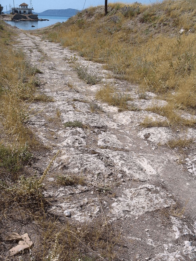 Arheolozi kažu da je put Diolkos, koji je omogućavao brodovima da izbegnu 220 kilometara dug put oko Peloponeskog poluostrva, izgrađen krajem 7. ili početkom 6. veka pre nove ere.