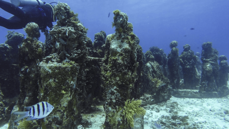 Stvoren 2009. godine, Museo Subacuatico de Arte (MUSA) najveća je podvodna atrakcija te vrste. Sastoji se od 500 skulptura u prirodnoj veličini koje treba da pokažu odnos između umetnosti i nauke o životnoj sredini. Osnovan od strane direktora Nacionalnog morskog parka, predsednika Nautičkog udruženja Kankuna i engleskog vajara, ovaj jedinstveni muzej služi u dve veoma važne ekološke svrhe: da skrene saobraćaj sa sve prenaselјenijih voda Morskog parka Kankun-Isla Mujeres i da se olakša oporavak resursa oblasti obezbeđivanjem alternativne složene strukture grebena bezbedne za kolonizaciju morskog života. Mesto podvodnog muzeja je pogodno za ronjenje i gnjuranje, podelјeno u 2 dela različite dubine. Salon Nizuc je dubok samo 4 metra i vidlјiv je samo tokom ronjenja, dok Salon Manchones dubok 8 metara omogućava mnogo više i veće lično iskustvo za ronioce.