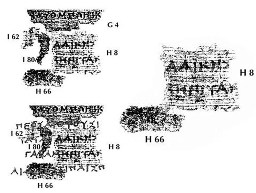 Oni uključuju citate Heraklita, grčkog filozofa. Čak se i raspored fragmenata dovodi u pitanje, što njihovu restauraciju čini izuzetno spornim. Valerija Piano i Ričard Janko, koji na drugim mestima primećuje da je otkrio da ovi stubovi uključuju i odlomak filozofa Parmenida, nedavno su dali dve različite rekonstrukcije.