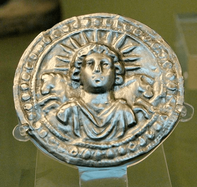 Zatim, tu je mozaik pronađen u grobnici Julija (vodeća porodica Rima koja u svoj broj ubraja Julija Cezara i njegovog nećaka Avgusta) za koji se tumači da je verzija Hrista na kolima. Filozof iz drugog veka Kliment Aleksandrijski je tvrdio da je u toj sceni Hristos vozio svoju kočiju po nebu, kao što je to činio Bog Sunca.
