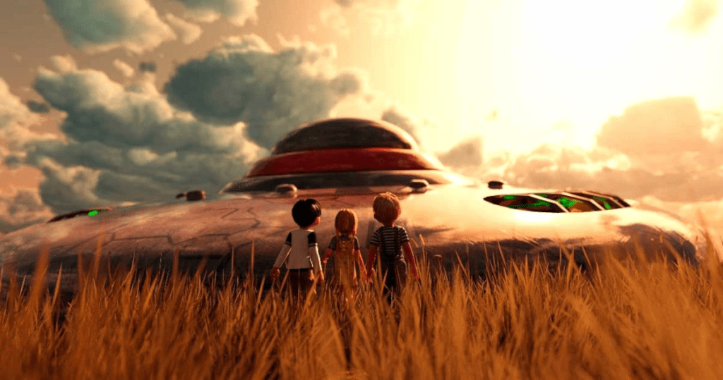 Između jednog i četiri bića velikih očiju, obučena u crno, iskrcala su se iz NLO-a i prišla deci. Neka deca su priznala da su u ovom trenutku pobegla, ali starija deca su ostala i posmatrala kako se stvorenja približavaju.