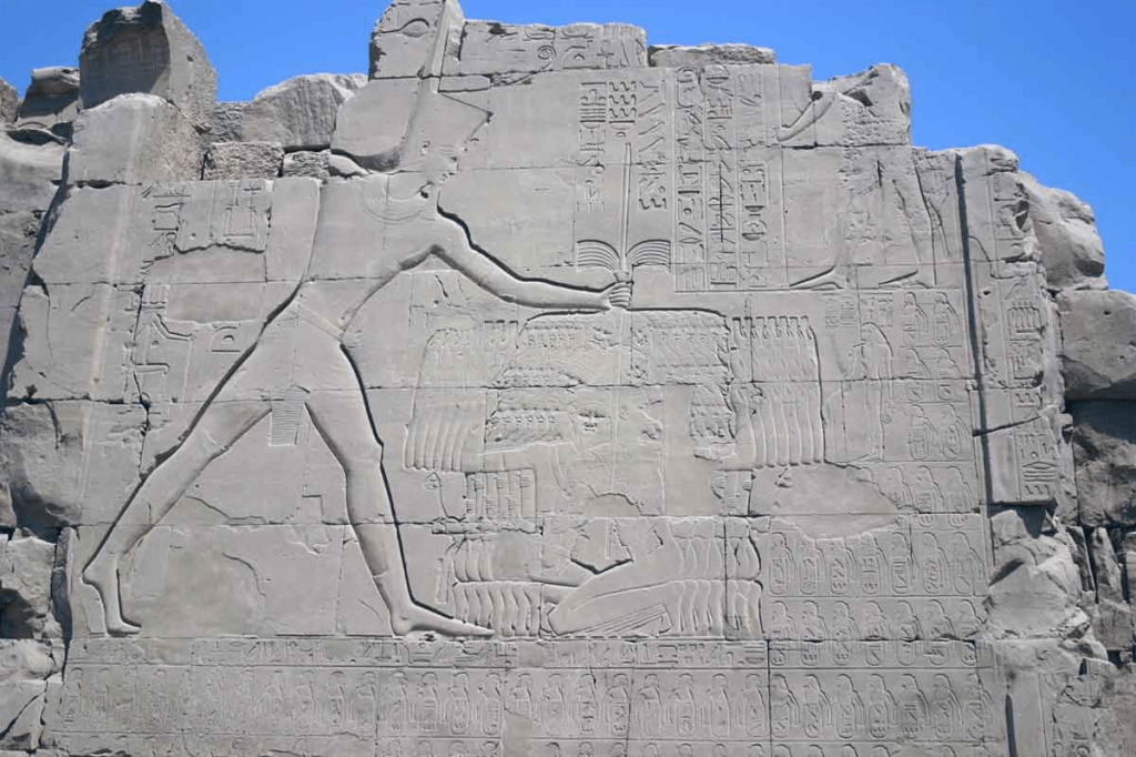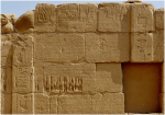 Veliki zidovi hramova bili su ukrašeni scenama trijumfa, kao što je povratak faraona iz bitke da predstavi zarobljenike bogovima, donošenje egzotične robe, prikaz ratnog plena i pogubljenja zarobljenika. Dok su unutrašnji delovi hrama odražavali ograničene, nepristupačne aspekte kralja i njegove moći i njegovog odnosa sa bogovima, spoljašnji delovi su bili njegovo javno lice, prikazano kao moćno, neporaženo, nemilosrdno, bogato, koje poseduje blagoslov bogova, a samim tim i sam Egipat.