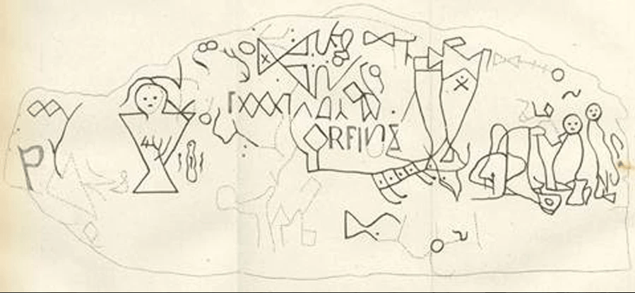 Petroglifi, prvenstveno sastavljeni od pravih linija i geometrijskih oblika, praćeni su vrlo jednostavnim crtežima ljudi zajedno sa spisima koji su poznati i nepoznati. Čini se, neobjašnjivo, kao mešavina drevnih i nesigurnih izvora.