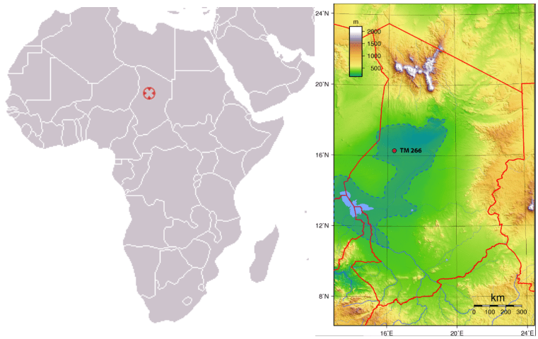 Godine 2001. istraživači su napravili izvanredno otkriće u pustinjskom pejzažu severnog Čada: kolekciju kostiju i fragmenata kostiju koji se nalaze pored uglavnom kompletne lobanje. Istraživači su lobanju nazvali “Toumai”, što znači “nada u život” na jeziku Toubousa, ili Goranaca, nomadskog stanovništva koje živi u Čadu.