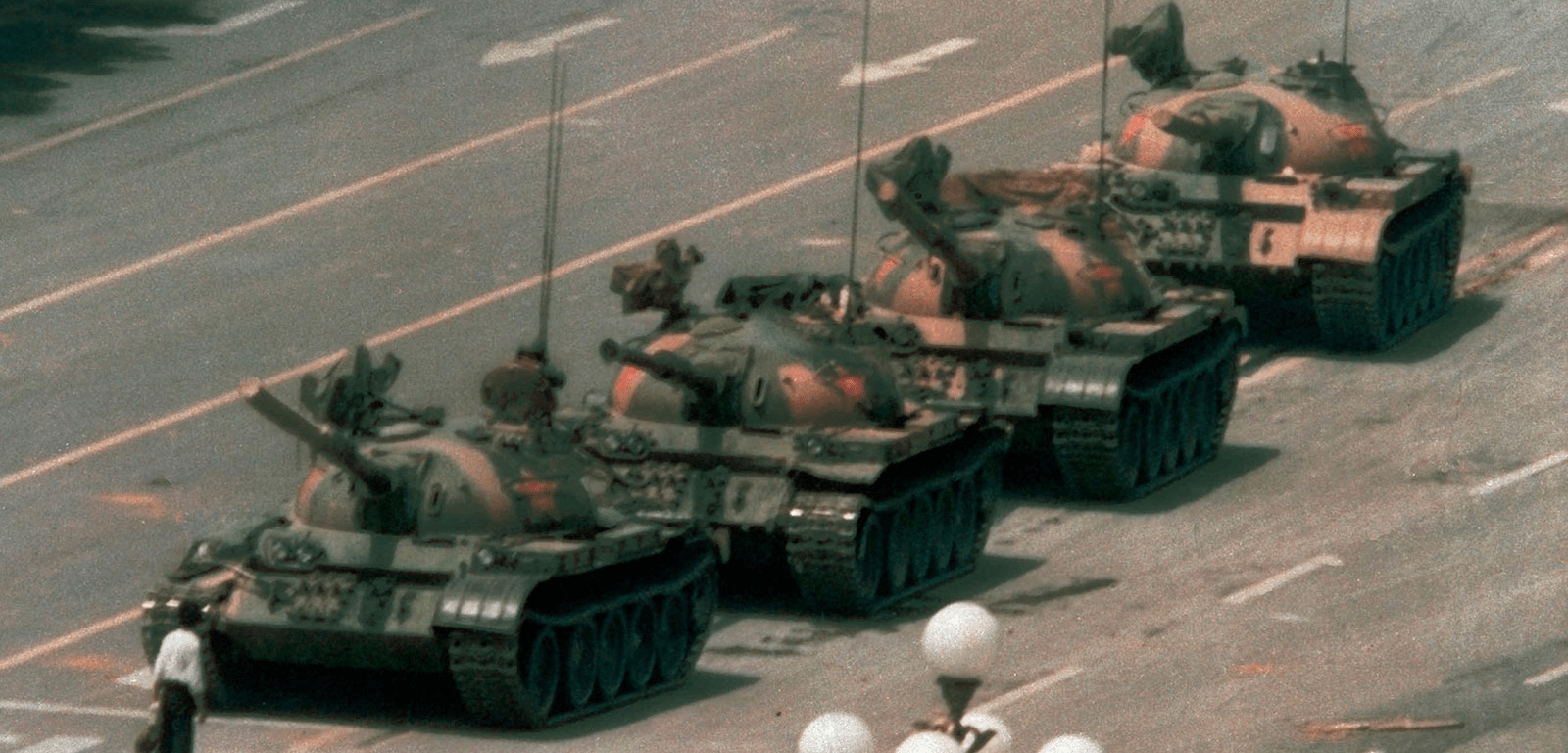 Jedna od najupečatljivijih i najpoznatijih scena iz protesta na Trgu Tjenanmen je slika neidentifikovanog mladića koji je, 5. juna 1989. godine, stao ispred kolone tenkova u znak prkosa. Ova ikonična fotografija, koja je obišla svet, postala je simbol hrabrosti i nenasilnog otpora. Do danas, identitet i sudbina ovog mladića ostaju nepoznati. Neki izvori tvrde da je uhapšen odmah nakon incidenta i da je kasnije pogubljen, dok drugi sugerišu da je uspeo da pobegne i ostane anoniman.