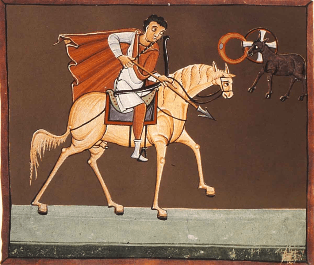 U Otkrivenju, prvi konjanik jaše belog konja i nosi krunu Stefanosa — krunu pobede. U ruci drži i luk. Otkrivenje 6:2 kaže: „izišao je pobedivši i da pobedi. To implicira da će konjanik biti uspešan u svojim potragama.