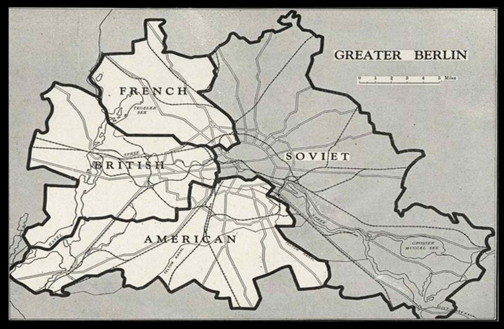 Sam Berlin je takođe bio podeljen na četiri kvadranta, gde su Britanci, Francuzi, Sovjeti i Amerikanci svaki policijski čuvao različitu zonu prestonice, koja je bila potpuno okružena teritorijom koju su okupirali Sovjeti.