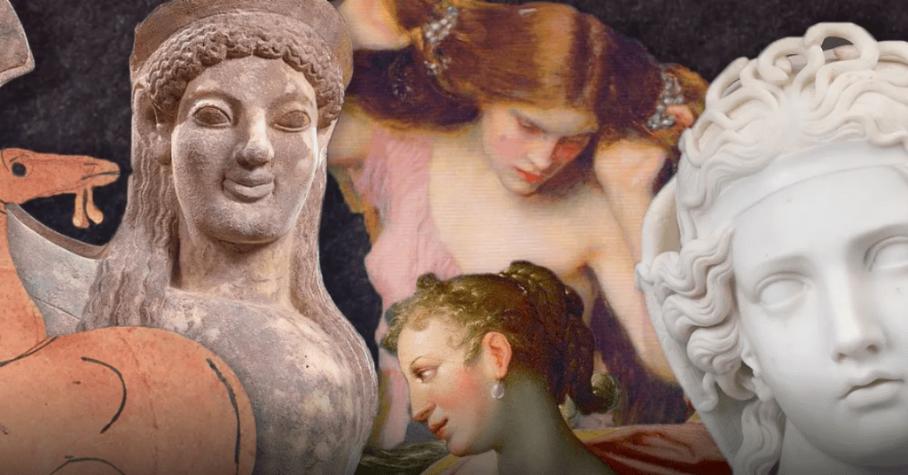 “Zanimljivo je da su se umetnički prikazi Meduze dramatično menjali tokom vremena, postajući sve više rodno obojeni”, rekla je Karaglu, kustos izložbe Met „Opasna lepota: Meduza u klasičnoj umetnosti “ u intervjuu iz 2018. godine. U izložbi je Karaglu objedinila više od 60 prikaza Meduzinog lica. Skulpture čudovišta iz arhaičnog grčkog perioda, otprilike od 700. do 480. godine pre nove ere, uglavnom su androgine figure. Dizajnirane da budu ružne i preteće, one se mogu pohvaliti bradama, kljovama i grimasama.