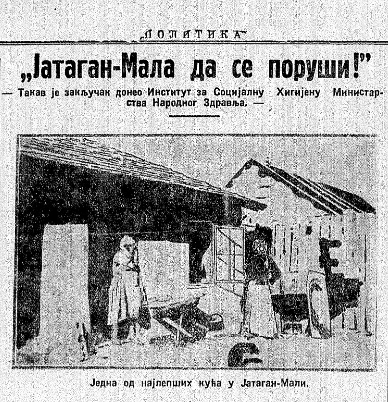 Godine 1931. komunalna situacija bila je znatno drugačija. U naselju je tada živelo oko 8.000 ljudi. Gotovo sve kuće su imale električno osvetljenje i bile su priključene na vodovod. Posebno je zanimljiv podatak da su stanovnici redovno plaćali sve račune za struju i vodu, kao i druge opštinske i državne takse, uključujući i porez na zgrade i zemljište. Fotografije Jatagan male iz tog perioda svedoče da je centralni deo izgubio karakter “naselja bede”. Na njima se vide skromne kuće i uređena dvorišta, a ni u kom slučaju bedne udžerice registrovane 1924. godine. Prema podacima koje je tada evidentirao Komitet za izmeštanje Jatagan male i Prokopa Opštine grada Beograda u naselju se tada nalazilo 1.437 kuća, sa oko 5.600 stanovnika. Tih godina se u naselju povećao broj različitih radnji i dućana, pa ih je bilo ukupno 82, među kojima je bio i veći broj pekara, bakalnica, piljarnica, kafana, bifea, berbernica, a postojala je i jedna narodna kuhinja. Prema Planu Beograda iz 1932. godine, u istočnom delu naselja nalazila se i pijaca.