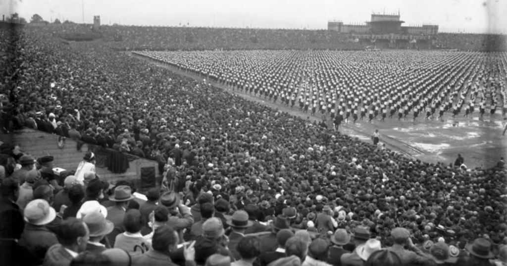 Već u senci predstojećeg rata, ali i dalje grandiozan. Oko 12.000 učesnika, uključujući i goste iz inostranstva. Bio je to poslednji slet pre rata i ukidanja pokreta.