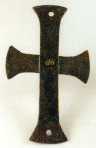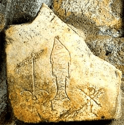 Među arheološkim nalazima iz katakombi i ranohrišćanskih grobnica, krst se pojavljuje retko i najčešće u stilizovanim, prikrivenim oblicima — kao deo simbola sidra ili unutar kriptograma.