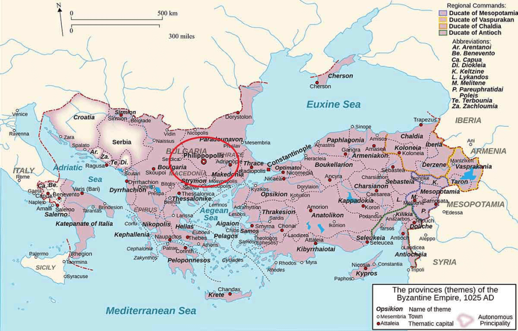 Međutim, u 7. veku osnovano je Kraljevstvo Bugarska, a granica između slovenskih plemena i Vizantinaca postala je Balkanski planinski venac koji se horizontalno proteže kroz današnju Bugarsku. Južna polovina obuhvatala je Filipopolj, koji je postao vitalni grad-tvrđava blizu ivice vizantijske kontrole.