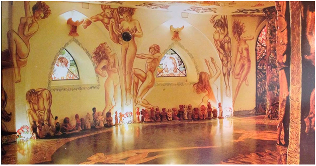 Danas se u njima nalazi zapanjujući niz slika, mozaika, skulptura i staklene umetnosti, odajući počast univerzalnoj duhovnosti. Vodena dvorana, posvećena ženstvenosti, čuva drevno znanje prepisano na dvanaest jezika.