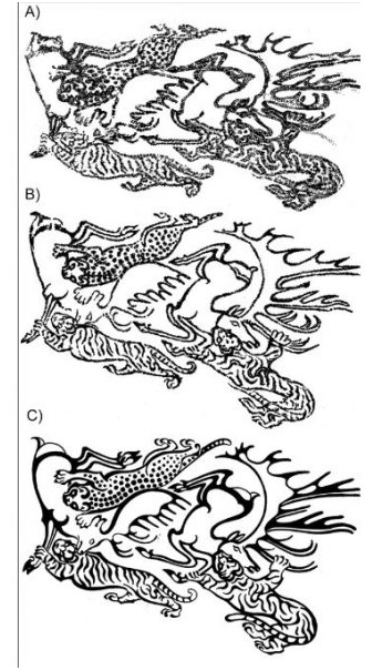 Još jedna od tetovaža koju su naučnici otkrili na telu žene prikazuje mitološku scenu. Tema je ponovo lov, u ovom slučaju grifon lovi jelena.
