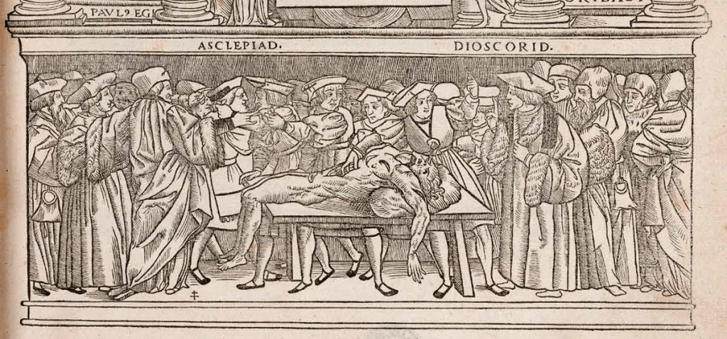 Prvu legalnu javnu disekciju sprovedenu još od vremena starih Grka i Rimljana izvršio je Mondino de Liuci u Bolonji u 14. veku. Nedugo zatim, Firentinska akademija umetnosti je uvela obavezan kurs anatomije za svoje umetnike.