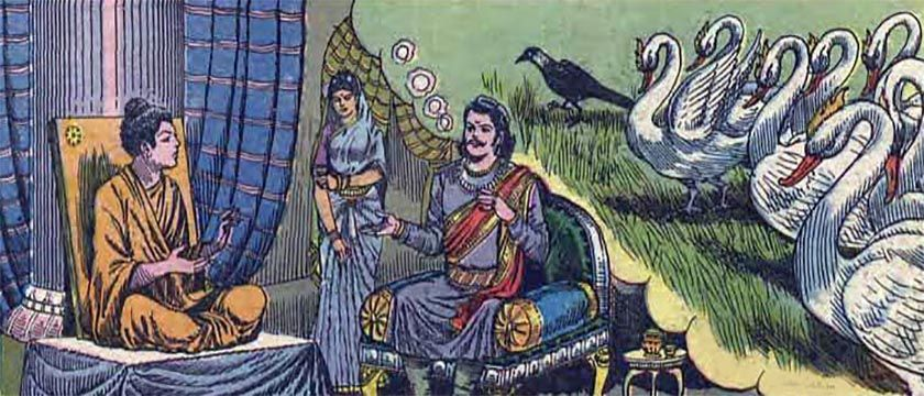 Kraljica ga zamoli da poseti Budu i objasni mu svoje snove. Samo ako Buda preporuči ove jagne, kralj bi trebalo da ih izvrši.