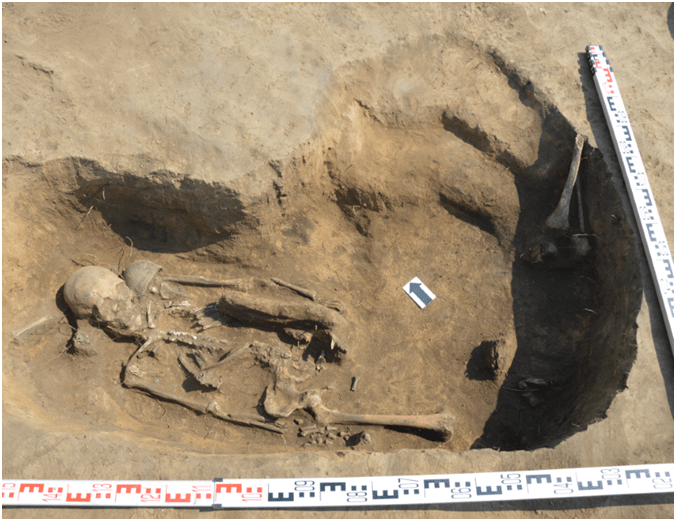 Isti obrazac se pojavljuje i na drugim mestima na groblju. Nekoliko muških sahrana uključivalo je konje, što je karakteristična odlika turskih pogrebnih običaja. Međutim, umesto potpunih sahrana konja tipičnih za stepu, životinje su postavljane u segmentiranom obliku – namerna modifikacija tradicije.