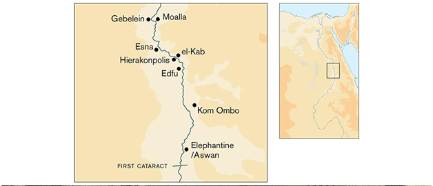 Preko Nila nalazi se Hijerakonpolis – jedno od najvažnijih ranih naselja u egipatskoj istoriji.