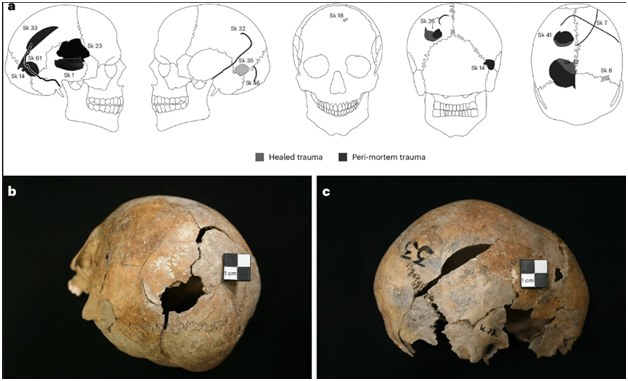 Analiza skeleta, CT skeniranje i studije traume otkrili su jasne znake nasilne smrti. Mnoge osobe su pretrpele perimortalne povrede – posebno traume tupim predmetom i rane oštrim predmetom u glavi – što ukazuje na koordinisane napade. Iako je samo oko 20% skeleta sačuvalo direktne dokaze o povredama, istraživači upozoravaju da mnoge smrtonosne povrede ne ostavljaju trag na kostima. Ranije pretpostavke da je bolest uzrok toga isključene su nakon što testiranje DNK patogena nije pronašlo dokaze o epidemijskoj infekciji.