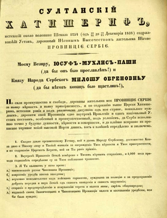 Dobijanje Hatišerifa iz 1830. godine, kojim je Srbija postala autonomna kneževina a Miloš nasledni knez, nije bio samo rezultat narodnog ustanka, već i najveće “investicije” u istoriji srpske diplomatije.