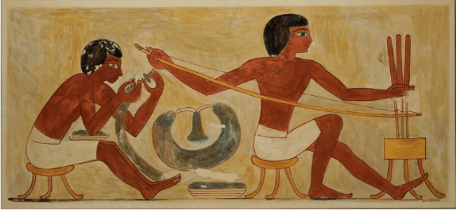 Međutim, nalaz Badarija je mnogo stariji i sugeriše da su Egipćani savladali brzo i kontrolisano rotaciono bušenje skoro dva milenijuma pre nego što su se pojavile ove kasnije slike.