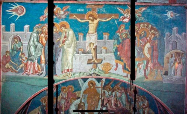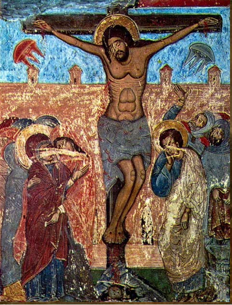 Na ovoj ruskoj fresci, oko Hristovih pazuha , vide se dva čudna predmeta. Dva predmeta ili projektuju zrake nalik koplju prema Hristovoj figuri ili nestaju dok Isus umire. Zanimljive paralele mogu se povući sa prikazima egipatskog jeretika Ehnatona, još jedne Hristove figure (nepoznati autor)