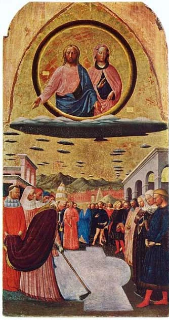 „Čudo snega“ prikazuje događaj gde je u Rimu pao sneg u junu, ali možda ovaj prikaz iz 15. veka ima nešto drugo da kaže. Kružni objekti, odvojeni od sloja oblaka, izgleda da su se čak rasporedili iznad stanovništva: da li su oni odgovorni za čudesni sneg? (Mazolino da Panikale)