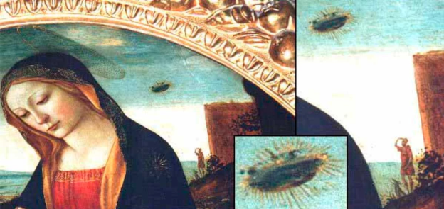 Postojalo je mnogo prikaza Madone sa Svetim Đovaninom. Međutim, na ovoj jedinstvenoj slici iz kasnog 15. veka postoji nešto veoma čudno u pozadini. Ovaj leteći objekat u obliku diska ne odgovara nijednoj očiglednoj religioznoj ikonografiji i, osim ako umetnik nije bio posebno čudan u svojim prikazima vanzemaljaca, čini se da prikazuje letelicu (Jakopo del Selajo)